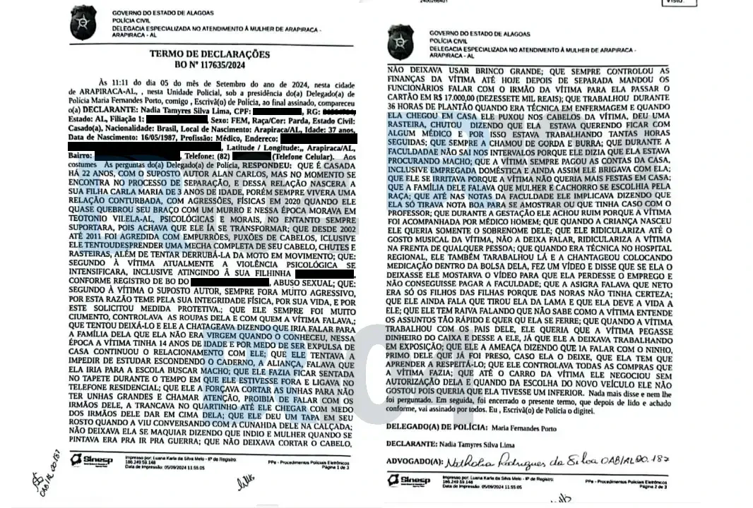 Um ano antes de matar o médico Alan Carlos de Lima Cavalcante, a médica Nadia Tamyres Silva Lima registrou um boletim de ocorrência que descreve pelo menos 14 tipos diferentes de violência, supostamente praticados ao longo de 22 anos de relacionamento.