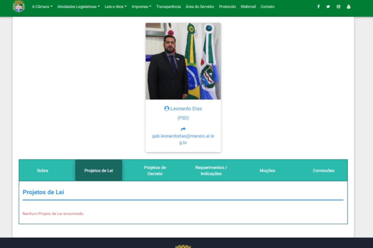 Também vale destacar que Leornado Dias, natural da cidade de Aracaju, em Sergipe, integra a Comissão de Constituição, Justiça e Redação Final e é presidente da Comissão de Defesa dos Direitos da Criança e do Adolescente da Câmara Municipal de Maceió.